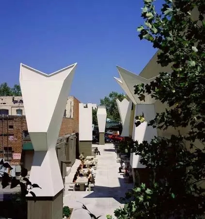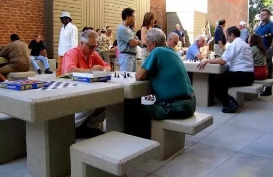 國(guó)際象棋公園位于格倫代爾市布蘭德大道中心街區(qū)的兩個(gè)商店之間,經(jīng)過歐斯·克萊門特·海爾工作室設(shè)計(jì)團(tuán)隊(duì)的奇特構(gòu)思,把這個(gè)曾經(jīng)單調(diào)乏味的連接停車場(chǎng)、劇院及周圍的過道轉(zhuǎn)變成一個(gè)地標(biāo)性地、以社區(qū)服務(wù)為導(dǎo)向的公共空間。在對(duì)這個(gè)矩形地塊進(jìn)行改造時(shí),設(shè)計(jì)師仔細(xì)研究了國(guó)際象棋競(jìng)賽的歷史,并以其競(jìng)賽規(guī)則和戰(zhàn)略戰(zhàn)術(shù)作為公園設(shè)計(jì)的基礎(chǔ),使公園的每處細(xì)節(jié)都與國(guó)際象棋詞匯的傳統(tǒng)含義相關(guān)聯(lián)。