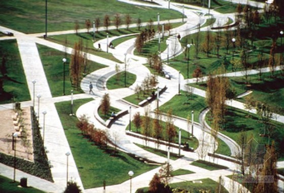 這是辛辛那提校園中心綠地規劃,設計在彼得沃克Palza Tower的基礎上再進了一步,這里是三條舞動的曲線與直線相交,非常富有動感和張力,曲線來源于早前流經這里的印第安溪流,算是對場地歷史的一種暗示,人行走其中就像行走在溪流中一樣,又像是伴隨著跳躍的閃電舞蹈,喚起了人們內心的激情和詩意。