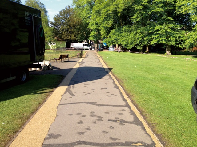 用滾輪蘸著含有液態聚氨基甲酸酯涂料在已有的道路上充分涂刷一遍。