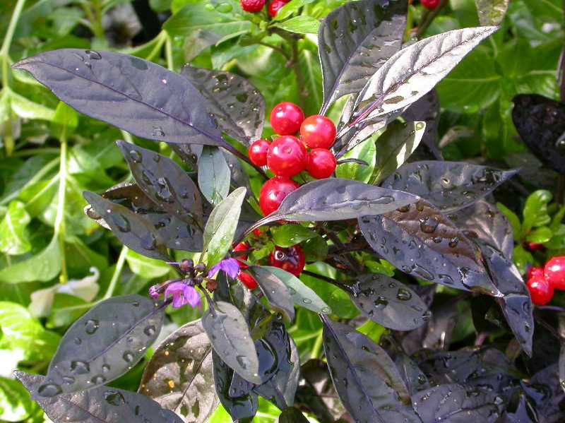 1. Capsicumannuum 'Black Pearl' 多年生,草本; 喜光;紫色花