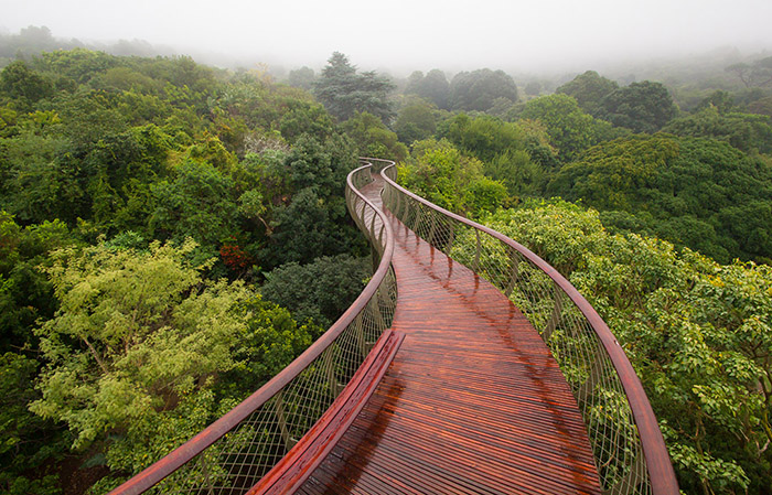 康斯坦博西植物園內被親切地稱為“非洲樹蛇”或“樹冠走廊”的森林橋梁現面向公眾開放,游客在這里可以欣賞到從森林地面到樹冠高度的非凡而獨特的景觀。這條長長的天橋本身也成了吸引游客的一大景點。如不精心設計和架設,這種大型結構在自然環境中將會十分突兀,因此建筑師盡量將這座蛇形天橋隱藏在周圍景觀中。以下是關于這座蛇形橋梁的幾個常見問題。