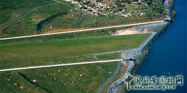 該區域之前是一個垃圾堆積場,設計師喬治·哈格里夫斯(George-Hargreaves)受邀對此地進行景觀設計,他和麥晉桁(Mack Architects)、道格拉斯·霍利斯(DouglasHollis)合作,將該區域的特有元素即:海風,水,船舶,碼頭和垃圾堆成的海岸,營造稱一個以基地特色為基礎的新文化空間。公園整體風格簡潔疏朗,能體驗四季變化的海風,蕭瑟的樹木與浪擊石岸的水聲。