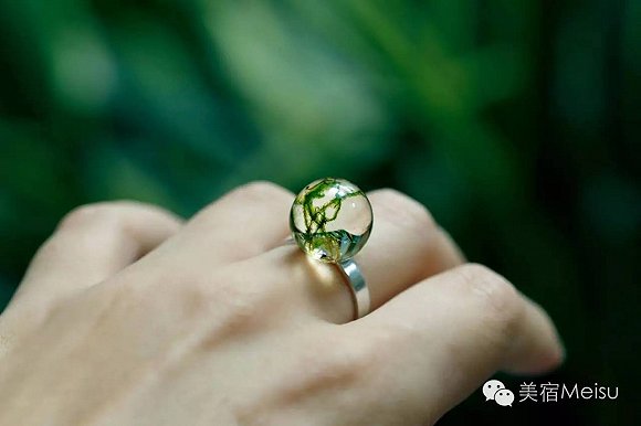 苔蘚除了能讓你頸上添花之外,也能繞指柔。當它化作指尖玩物之時,可塑性就更大了。它可以被壓在水晶或者玻璃里面,繼續玩微景觀;