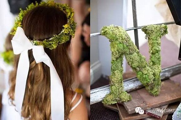 當(dāng)然,它還可以成為新娘神圣的頭環(huán);或者用苔蘚字母拼出二人的姓名,也算是一種愛(ài)的紀(jì)念吧~