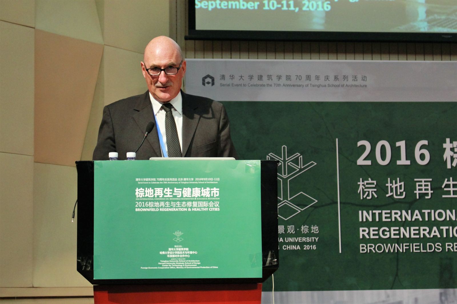 “2016棕地再生與生態修復國際會議”由清華大學建筑學院、美國哈佛大學設計學院技術與環境中心、環保部對外合作中心聯合主辦,清華大學建筑學院景觀學系承辦,是清華大學建筑學院70周年院慶的重要系列學術活動之一。會議由中關村智慧環境產業聯盟協辦,北京高能時代環境技術股份有限公司主要贊助,合作單位包括深圳市鐵漢生態環境股份有限公司、北京清華同衡規劃設計研究院有限公司、ECOLAND易蘭設計、中國風景園林網,支持媒體包括《中國園林》、《風景園林》、《景觀設計學》、《世界建筑》、《生態學報》、景觀中國網、《南方都市報》、中國建筑工業出版社、《城市·環境·設計(UED)》、E20環境平臺、中國生態修復網、中國環境報社《環境經濟》等。