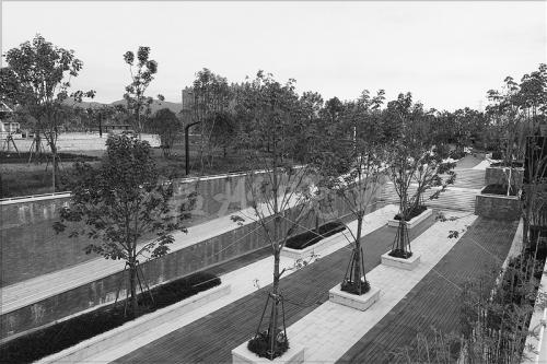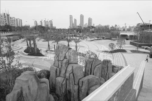 施工心意:可步行、騎車觀景還有無障礙設(shè)施,花壇基座四角已被磨成圓角