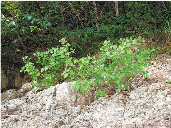 “在象山新橋鎮蟹蚶港一處大約100米長的海岸線上,發現了300多株海濱木槿,樹桿高的達4米,矮的也有1米左右,在海邊形成帶狀群落。”林海倫興奮地描述著這一發現,“這些海濱木槿都生長在潮間帶的上限處,立地處多數是有土層的,部分樹苗直接生長在礁巖的縫隙中。在潮間帶上方的山坡上并沒有發現海濱木槿生長,可見它們是靠海水進行傳播的。”