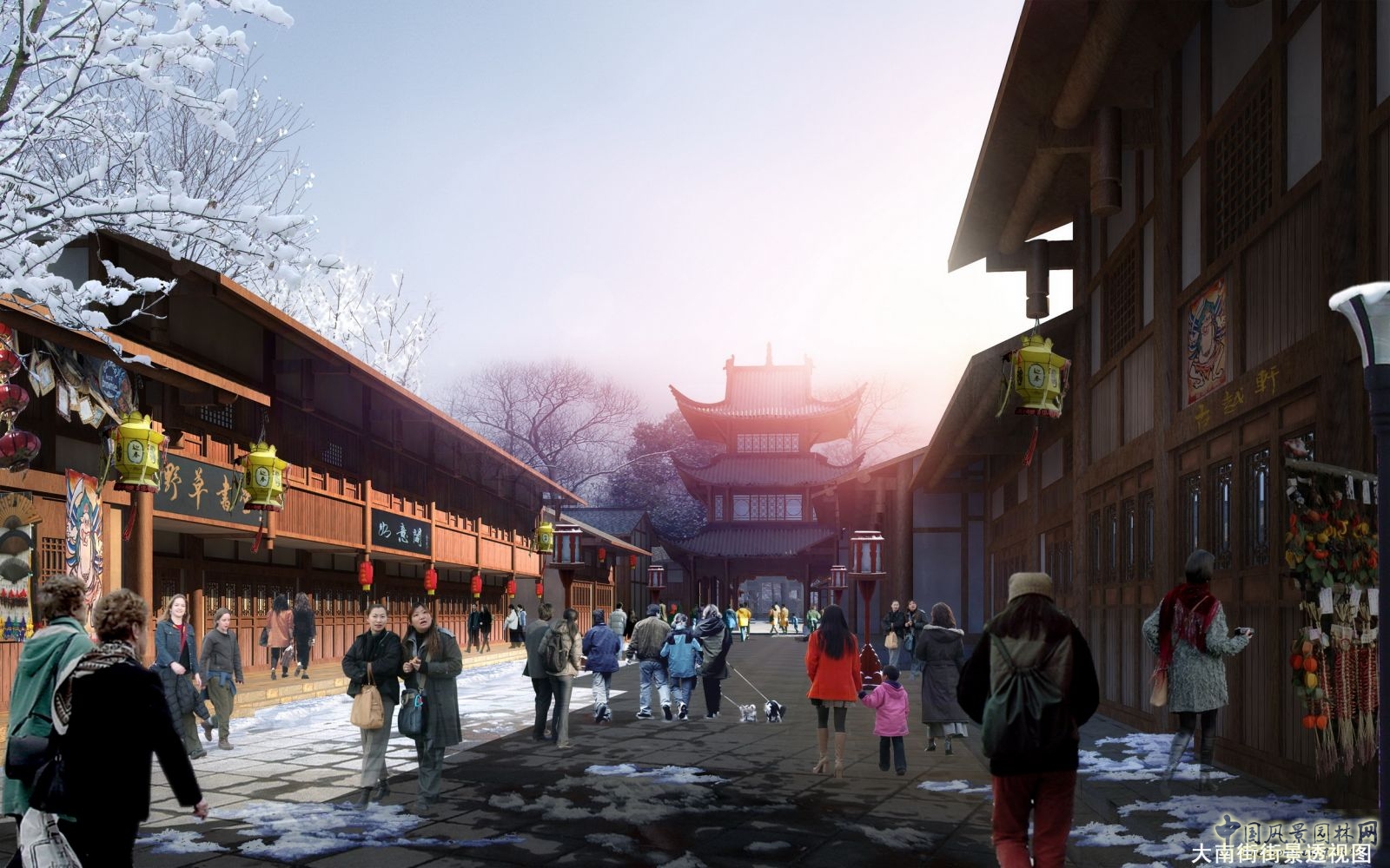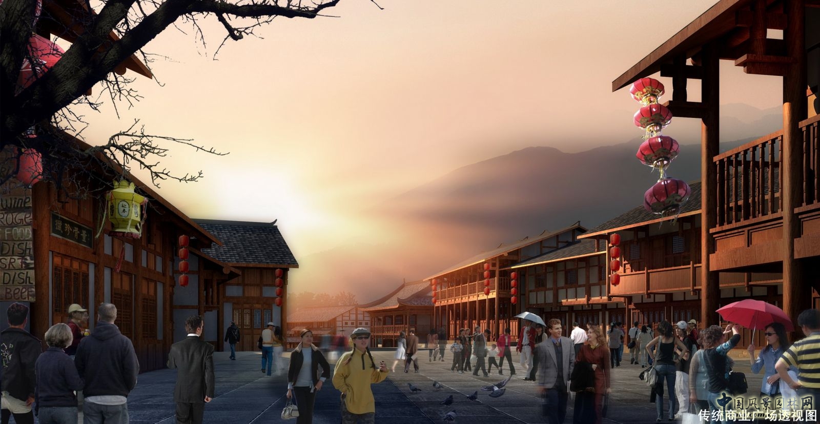 建筑為中式古建的設(shè)計(jì)手法結(jié)合地方特色元素,體現(xiàn)生活韻味和當(dāng)?shù)孛褡屣L(fēng)情的建筑空間。