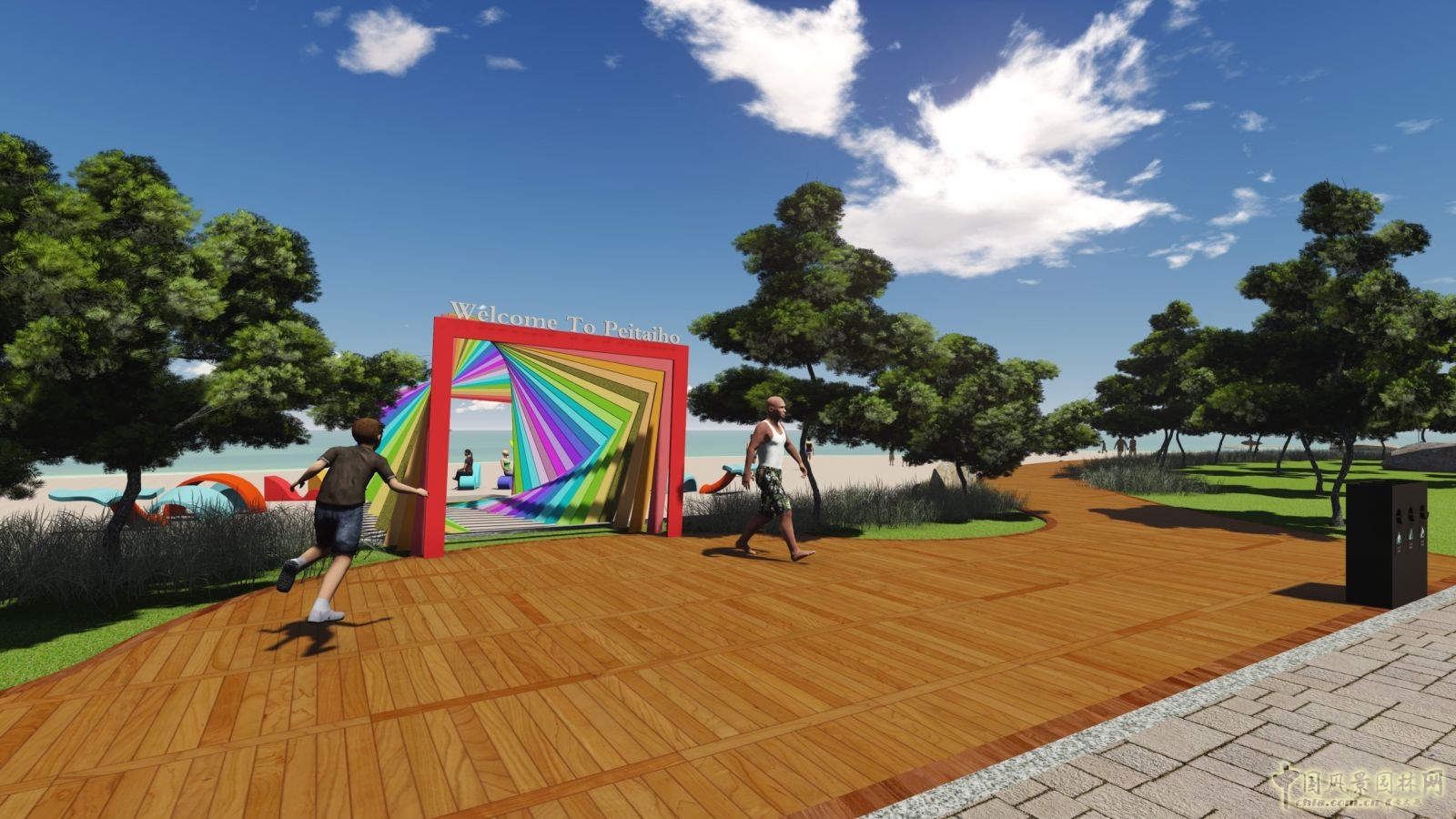 理念:玉帶串珠——沙灘帶+木棧道帶+綠帶,串聯各個景點