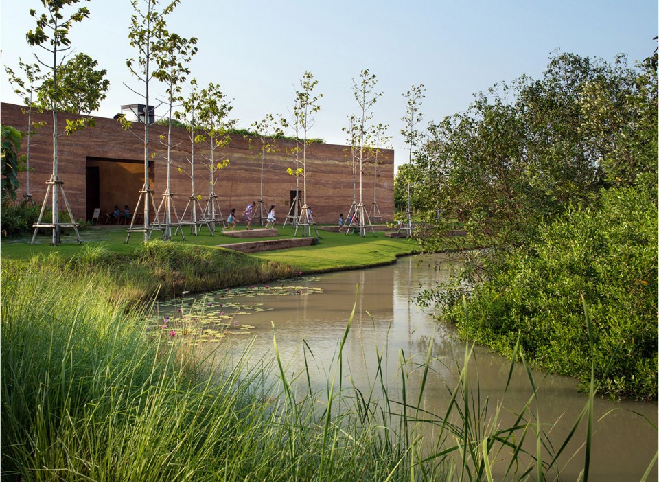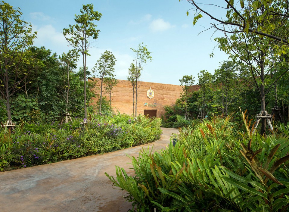 都市森林公園坐落于曼谷東部邊緣的郊區Prawet,距離素萬那普國際機場約6公里。設計團隊在這個生態修復項目中加入了戶外展覽空間元素,希望借此機會教育民眾本地森林生態的相關知識,喚醒他們的環保意識。面積約兩公頃荒廢土地被回收利用,通過大量種植本土低地熱帶植被,將其重塑為足以應對城郊擴張趨勢、城市熱島效應與洪水淹沒區發展的綜合性綠地。