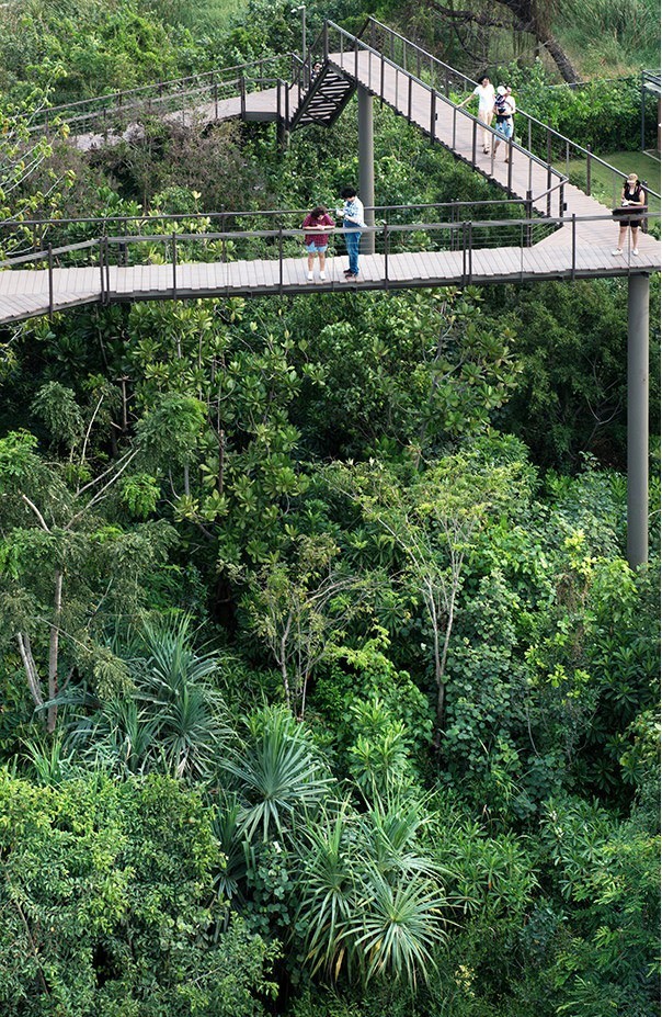起伏的空中步道讓游客能夠多角度的觀賞叢林,同時也讓他們遠離地面,最小化其對正在萌芽發展中森林的干擾