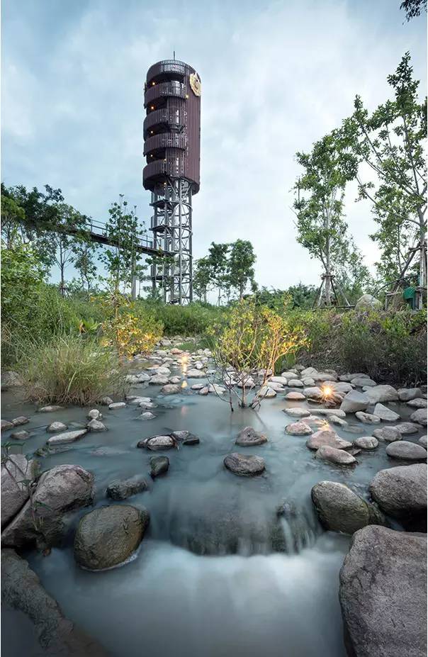 憑借起伏臺地塑造而成的瀑布溪流,以及空中步道、眺望塔、展覽中心的碳中性設計,項目獲得了LEED-NC鉑金級認證。而來自景觀團隊的設計讓外部空間變成了以夯實素土打造的展覽空間的延伸,都市森林公園正如當初PTT造林部門所許下的承諾一般,成為了一個能夠喚醒公眾的森林管理意識,并認識到環保的重要性,真正意義上的公眾空間。無數的野生動物在此落戶安家,繁衍生息,也讓人們能夠近距離的接觸、觀察他們。