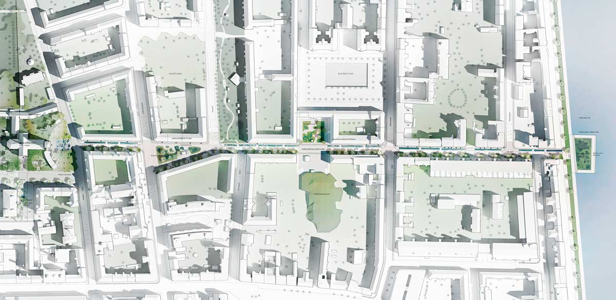 該項(xiàng)目的重點(diǎn)在于針對哥本哈根市中心Hans Tavsens公園和周邊區(qū)域重新設(shè)計(jì)。這個投入了1.4億丹麥克朗(2000萬美元)的城市空間項(xiàng)目將成為一個標(biāo)志性的設(shè)計(jì)范例,從城市設(shè)計(jì)角度應(yīng)對密集的暴雨,解決城市內(nèi)澇,同時提升區(qū)域內(nèi)獨(dú)特的社會、文化和自然價值,以提高居民的生活質(zhì)量。