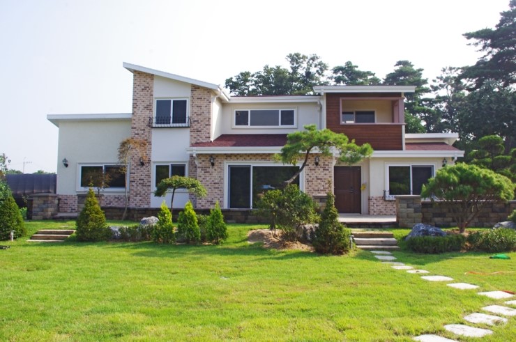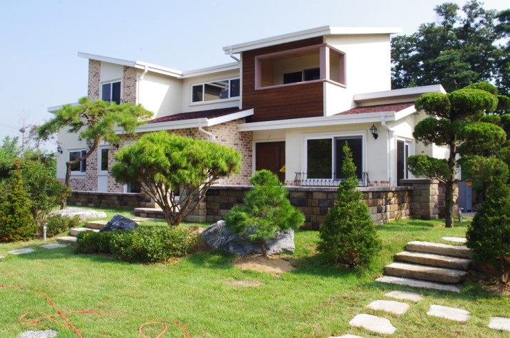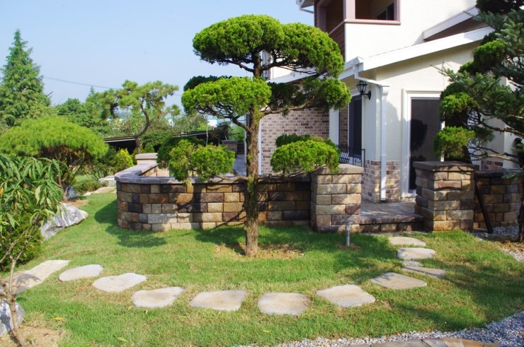 中國風景園林網訊 韓國首爾京畿道水源市新里的一棟個人住宅。用木材甲板代替地磚鋪設在人行道和景觀墻壁上,再加上工匠師們完美的鋪設臺階石,美麗的