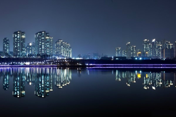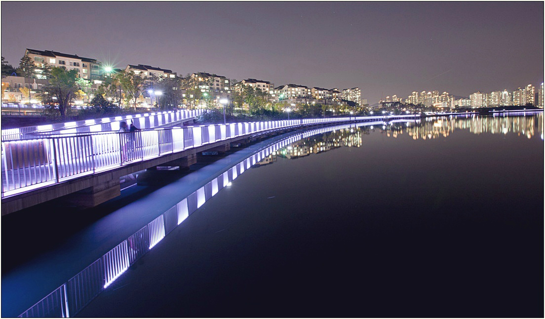 獨(dú)自行走在斑斕的夜色中,是無比的浪漫愜意。仿佛可以抖落一身的傷感和疲憊,輕松愜意,不用去想任何煩惱。望著水中滑滑明亮的倒影,有一絲淡淡慵懶的思緒不停的涌動。