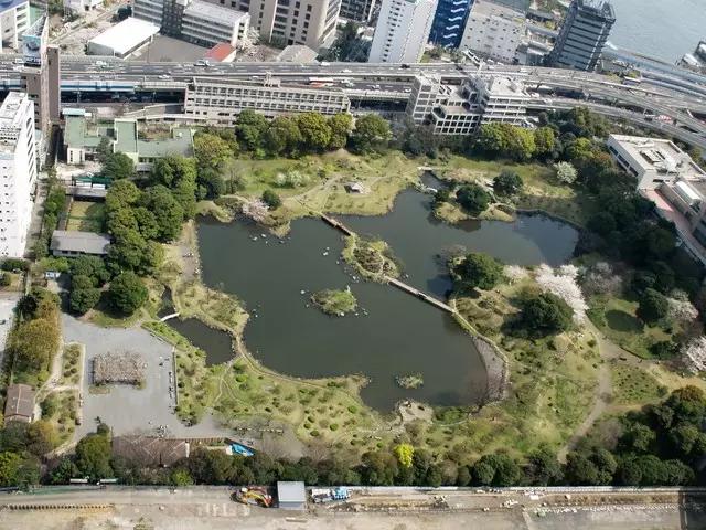 說(shuō)它是池園,是因?yàn)樗匀礊橹行模瑯?gòu)筑水池,池中布置五個(gè)島嶼,島嶼之間用橋相連,島上堆土山,山上建亭子,有些中國(guó)山水園的影子。
