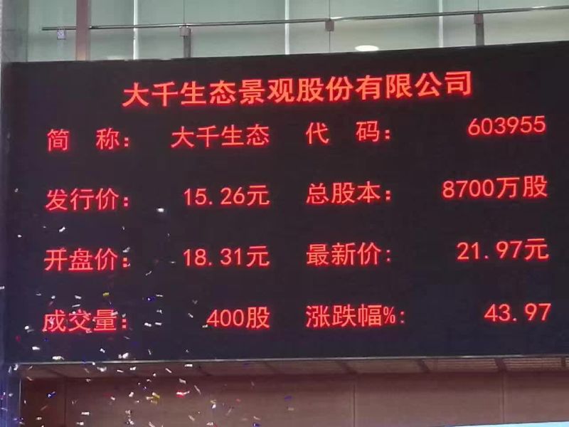 江蘇大千生態景觀公司成功登陸上交所