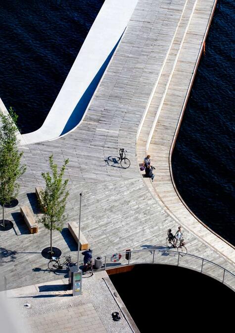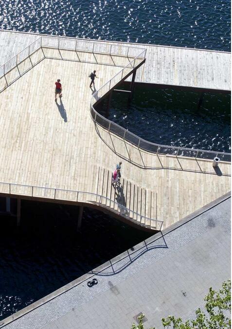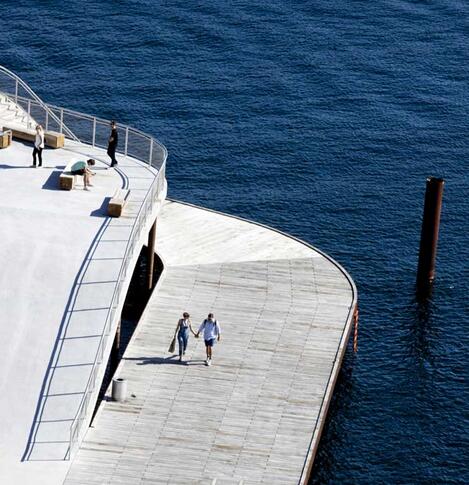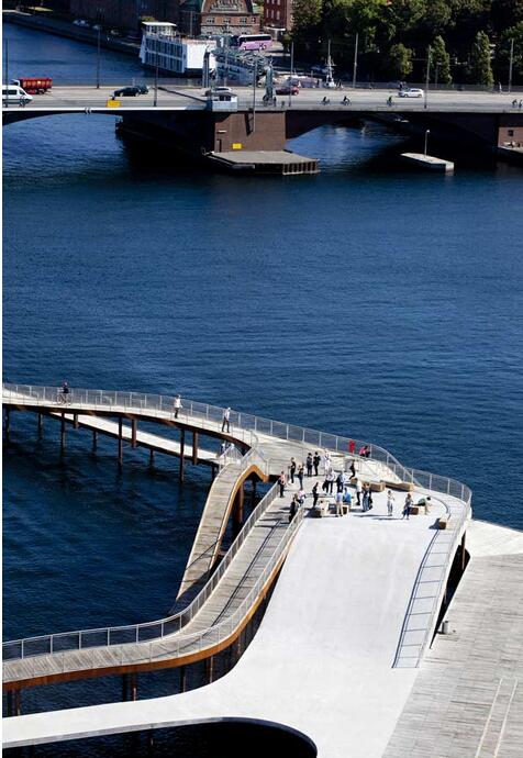 隨著KalvebodWaves在哥本哈根港口的開放,內港的中央部分終于變得公眾可及并且具有吸引力。水上的這個新的公共空間給港灣一個新的維度,使其作為城市中心的重建空間。歷史上,這部分港口專門用于工業活動。在80年代至90年代,政府出售了這片土地,使得該片區逐漸變成了一個建筑和景觀都粗糙且單一的地方,沒有任何公共活動在此舉行。