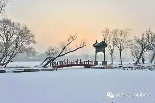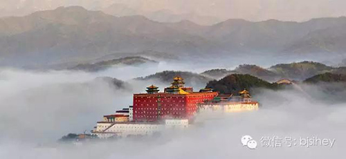 古建園林中式裝修中不乏以水中倒影來(lái)形成景致之筆,更有借用遠(yuǎn)峰或者遠(yuǎn)處高大的建筑物來(lái)豐滿(mǎn)庭院內(nèi)的景觀視覺(jué)。《園冶》“借”者:園雖別內(nèi)外,得景則無(wú)拘遠(yuǎn)近,晴巒聳秀,紺宇凌空,極目所至,俗則屏之,佳則收之。在位于避暑山莊南部的松鶴清樾北山峰頂。是“康熙三十六景”第十二景。為一方亭。每當(dāng)夕陽(yáng)西照,漫天紅紫。此時(shí),東山的磬錘峰金碧輝煌,宏偉壯麗。磬錘落照就是避暑山莊遠(yuǎn)借之妙筆。