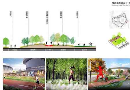 戶外運(yùn)動場地與綠化空間將進(jìn)一步交融。結(jié)合綠化設(shè)置運(yùn)動場地,營造在樹林中運(yùn)動的感受,并利用喬灌木減少不同種類體育活動之間的干擾。戶外運(yùn)動項(xiàng)目主要包括足球公園、籃球公園等。室外場地既要滿足青少年精英基地和少體校訓(xùn)練,又兼顧對市民的開放。