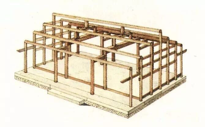 每排柱子靠穿透柱身的穿枋橫向貫穿起來(lái),成一榀構(gòu)架。