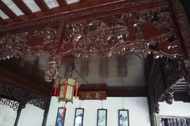 除了卍字紋之外,留園內(nèi)也有帶有花紋雕刻的掛落,如恰航的掛落。