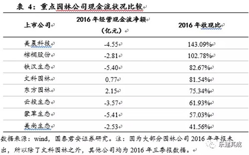 基于前文所述,我們看好基于特色小鎮、生態環保及海綿城市等新邏輯打開園林行業成長邊界的前景,并將其作為選股邏輯的重要指標之一。結合當下的市場風格來看,業績爆發性越高、估值越低、現金流越好的企業更容易被市場認可。同時,負債率和應收賬款占比也是影響公司投資價值的重要因素,過高的資產負債率會消耗掉大量公司的利潤、壓縮公司再融資空間,占比過高的應收賬款則可能轉化為壞賬損失而降低公司利潤、減少股東回報。所以我們的選股邏輯包括成長性、EPS增速和PE、現金流、資產負債率及應收賬款占比這四個指標。