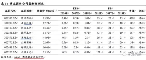 綜上所述,我們認為業務布局與特色小鎮及生態環保等增量領域關系最緊密的標的最有機會,并綜合權衡EPS增速和估值、現金流、負債率等指標,重點推薦園林“八大金剛”組合:鐵漢生態(首推)、棕櫚股份、東方園林、美晨科技、文科園林、云投生態、美尚生態、蒙草生態。