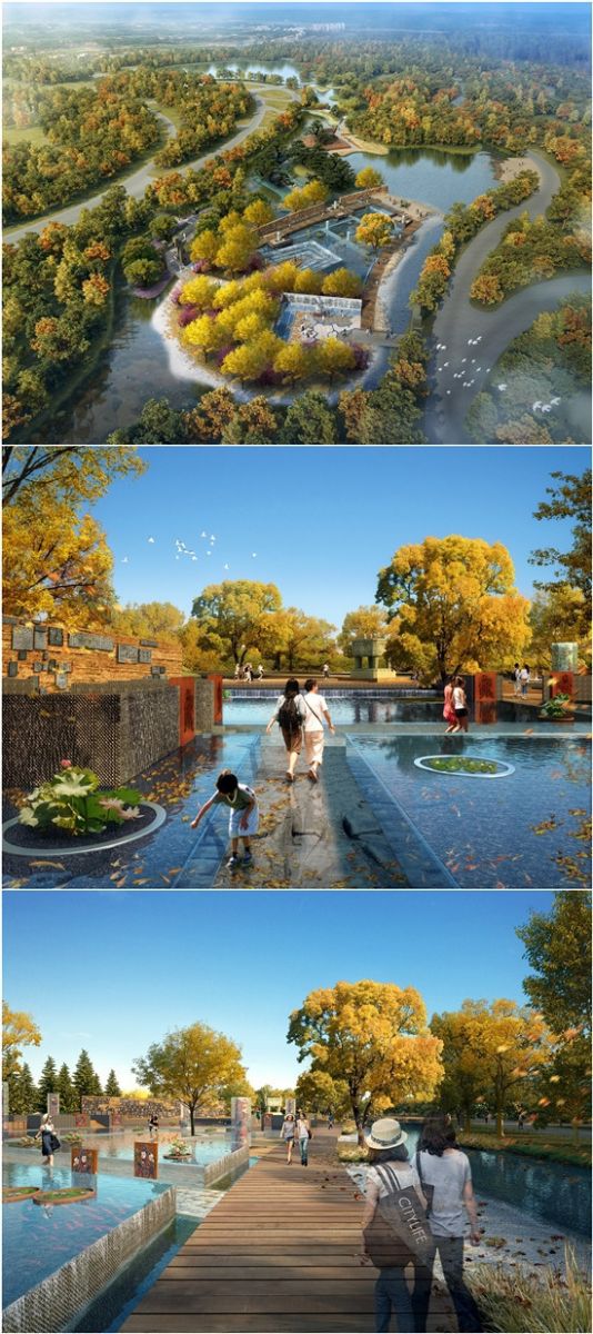 衡水園博園西臨國家級水利風(fēng)景區(qū)和國家級生態(tài)旅游示范區(qū),也是國家級濕地和鳥類保護區(qū)衡水湖。東面依托老鹽河濕地,巧妙借景衡水湖和老鹽河。園內(nèi)映花湖、如意湖、滏陽湖等水系都與老鹽河、衡水湖互聯(lián)互通、渾然天成,自然地融入了衡水湖濕地系統(tǒng)。園博園外觀設(shè)計為“腎”形,也表達了“科學(xué)保護、永續(xù)利用濕地”的愿望。