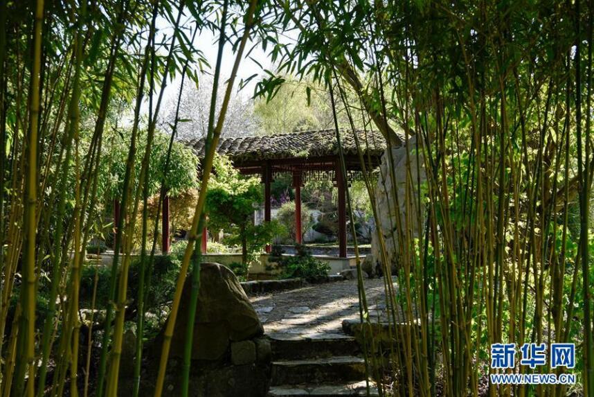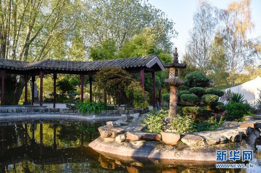 這是4月9日在法國巴黎郊區(qū)圣雷米-奧諾雷拍攝的怡黎園一角。占地6000平方米的怡黎園是由上世紀(jì)80年代留法的中國園藝師康群威、建筑師石巧芳與蘇州園林局合作設(shè)計建造的。回廊、花墻、山石和飛檐,莫不展示出蘇州園林的詩情畫意和巧奪天工。陳益宸/攝