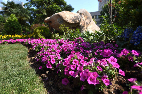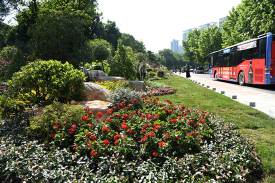 此外,為全面提升老城區綠化品質,瑤海區還同步對老城區內明光路、長江東大街、郎溪路等道路沿線島頭,通過鋪設草花,增加花灌木、消除缺株斷檔、修剪造型等增彩轉型的方式進行點綴靚化,持續實施綠化景觀提升。共對20個沿線島頭、綠地實施點綴靚化,實施總面積1650平方米。