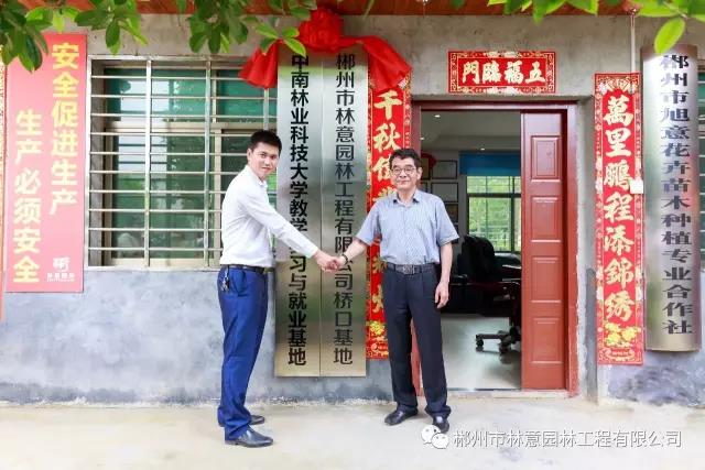 中南林業(yè)科技大學(xué)風(fēng)景園林學(xué)院院長沈守云先生與公司總經(jīng)理張皓理先生為橋口展示基地“實(shí)習(xí)與就業(yè)基地”揭牌。