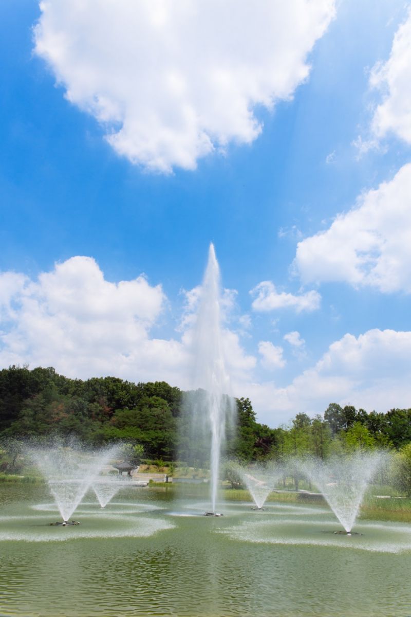 北首爾夢之林是江北地區最早建成的大型綠地公園,經過改造后,陳舊的設施全部拆除掉,搖身一變成為與地形完美匹配的生態型景觀空間。復原的傳統建筑物昌寧宮,還有與周邊湖水連成一線的亭子和瀑布,形成了景觀的連續性。一到晚上"月影池"燈火輝煌。在五光十色的燈光照耀下,顯得更加神秘。沿著"月影池"散步,可以欣賞到美麗的荷花和柔美的瀑布。