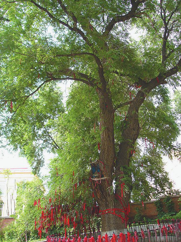 身世:據(jù)傳說,50年前,有人欲將這株榆樹伐掉,在鋸木過程中,樹木流出紅色汁液,砍樹之人便停止了砍伐。2002年平房公園改造時(shí),將這株古樹周圍進(jìn)行了修繕和美化,將其命名為“神榆”,并安置一塊景石刻上了有關(guān)傳說。