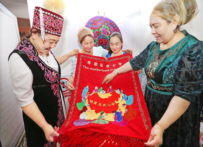 記者了解到,2016年3月,在文化部和自治區人民政府的合力推動下,全國首個傳統工藝工作站——新疆哈密傳統工藝工作站正式成立后,與雅昌文化集團、清華大學美術學院以及哈密市三方合作,目前已培訓繡娘4170人次,開發798種哈密刺繡新產品,阿米娜·玉蘇甫就是其中的受益者。展柜前,繡著維吾爾族傳統文化圖案的抱枕和服裝等,將傳統手工刺繡技藝與現代元素融為一體,讓人感到新穎、時尚、大氣。從16歲開始學刺繡的阿米娜·玉蘇甫,和很多當地維吾爾族婦女一起,通過這個工作站,不但傳承著民族刺繡文化,還學會了用新美學理念進行創新,在傳承與創新中,收入不斷增加,她們的生活和精神面貌發生了很大變化。