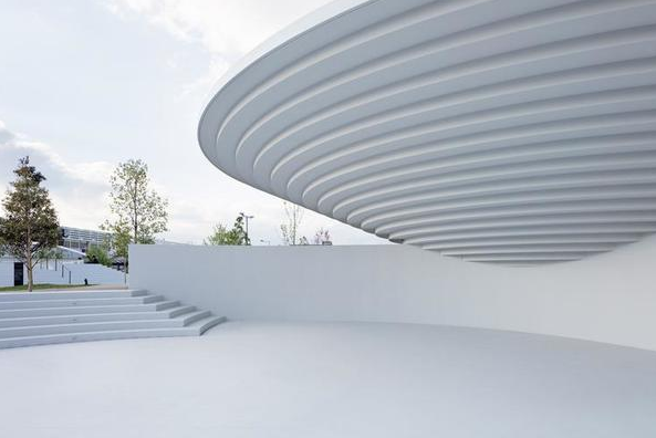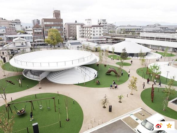 今年 4月,在日本奈良中北部的天理市中心站前廣場上,多了一些惹人注目的圓盤狀白色建筑。