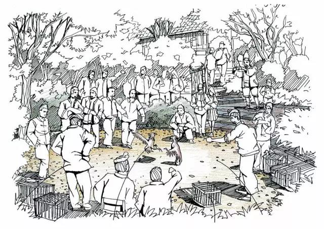 東湖靠城區(qū)湖岸區(qū)域地名在苗語(yǔ)中為“干排靵”,漢譯即為鼓樓之意,故名鼓樓廣場(chǎng)。陣列圖騰柱的排布,營(yíng)造民族風(fēng)情感十足的空間秩序,位于兩側(cè)的斗雞場(chǎng)、斗牛場(chǎng)、鳥籠主題小院,為更進(jìn)一步展現(xiàn)丹寨苗族休閑娛樂活動(dòng)提供了體驗(yàn)空間。