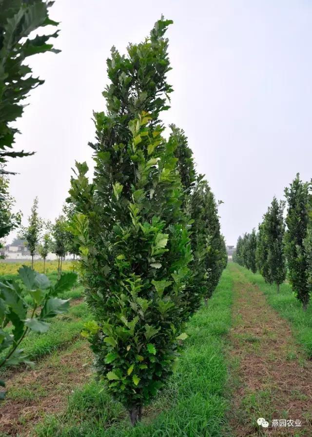“戰旗”是英國櫟和沼生白櫟的雜交品種,樹形為狹窄的直柱形,是所有柱狀櫟樹的代表,在國內的表現也極為出色。樹高可達11米,冠幅可達3米,葉子表面為深綠色,背面為銀色,秋季變為黃色。抗風抗寒,抗病抗旱,非常適應城市環境。