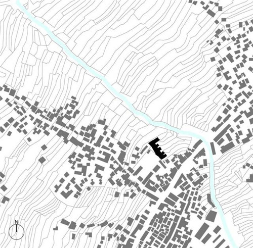 漢源縣唐家鎮(zhèn)位于四川省雅安市南部、大渡河支流流沙河的河谷,四面環(huán)山。平地稀少,人口稠密。高山、深谷、河灘、梯田、集鎮(zhèn)以及山間高架穿行的高速路共同構(gòu)成了場(chǎng)地氣勢(shì)恢宏的地理格局。唐家鎮(zhèn)集賢村沿鄉(xiāng)村主路而建,向兩側(cè)農(nóng)田漸次展開,集賢中心校位于主路附近。幼兒園用地位于中心校內(nèi),場(chǎng)地有4米的高差,原為農(nóng)田,一邊與學(xué)校和村舍相鄰,另一邊面朝開闊的田園。梯田逐級(jí)向流沙河方向跌落,遠(yuǎn)處層巒疊嶂,極目之處是山谷的開口。幼兒園用地只能通過(guò)中心校場(chǎng)地與外界聯(lián)系起來(lái)。