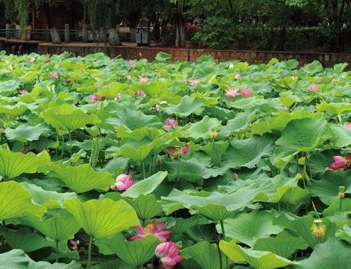 此次荷花展,公園在整體大環境也做了相應的布置,在南門、北門擺放了2組名為“彩云之南”、“水鄉風情”的荷花造景小品,并擺放了草花47000盆、缸栽荷花300盆及缸栽睡蓮100盆,供前來翠湖公園賞荷的市民及游客合影留念。