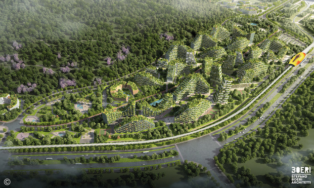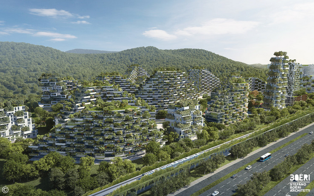 這座綠化城市的理念來自于 Stefano Boeri Architetti 建筑事務所對垂直綠化的深入研究,他們在意大利的米蘭完成了世界上第一個立體綠化大樓,現在在全球范圍內同時進行著其他幾個綠化系統設計方案,其中包括中國的南京,上海和深圳。