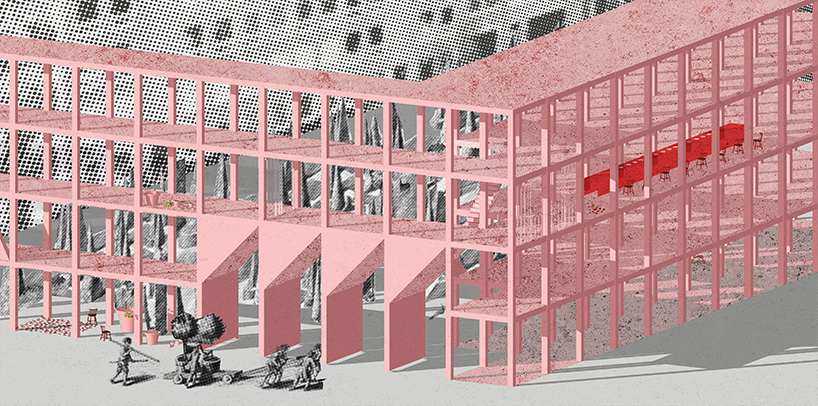 經過研究探索,決定在這個區域內,難民可擁有特殊的法律許可,他們可以參與到城市經濟社會發展中。并且新的社會空間因素將會促進現有的社會組織發展,新增50%的工作崗位和生活空間。另外,升級空間架構,新住戶填補原有的空白,激發城市間的互動交流,促進共同生活。基本架構的形成為之后的填充奠定了基礎,隨著時間的推移,整個空間將豐盈起來。所有的框架的基本特征和材料都相同,都可以積極參與到社會活動當中。