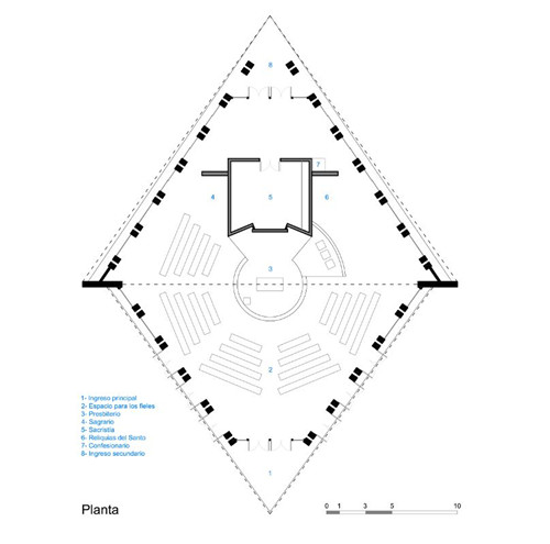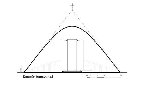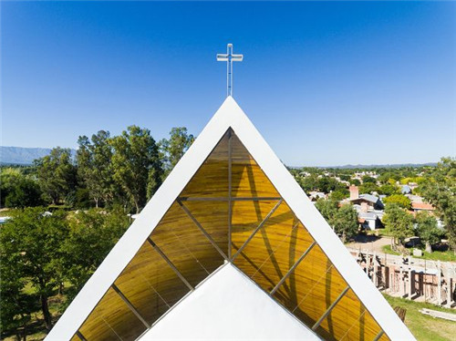 由當地建筑師設計費德里科•奧喬亞設計,這個教堂從地下有機的生長出來,急劇地上升。象征性地代表brochero升天,長斜方形的形式逐步提升,最終指向天空。同時,教會的集中分布引用了“最后的晚餐”,使其集合成為一個社區(qū)。
