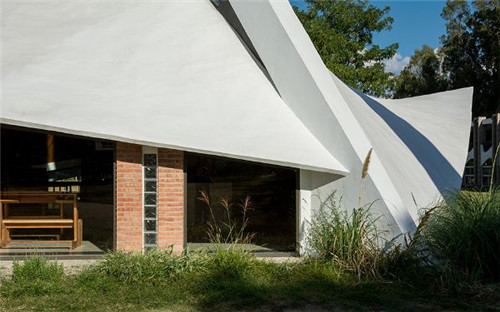 這種簡單材料的主要用途體現了brochero的謙遜特質,建筑師選擇的磚塊,石頭和項目內部空間的木材與這樣的特質相得益彰。天花板的開放使建筑內部被自然光點亮,但仍然看不見其結構。在晚上,十字架,坐落在教堂的尖塔變得明亮,成為了社區(qū)中心的燈塔。