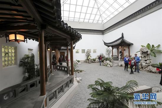 美國紐約大都會博物館,游客在“明軒”內參觀。