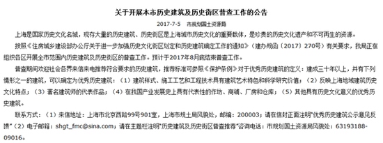 上海將對歷史建筑及歷史街區開展普查來源:上海規土局官網