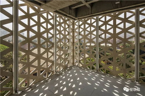 其概念基于"呼吸的建筑",思考了關(guān)于"簡(jiǎn)單的材料,智能幾何"的問(wèn)題。高質(zhì)量預(yù)制元素構(gòu)成的外部表皮允許外部的煙囪直接吸入室外的冷空氣,生成和影響熱質(zhì)量。熱力學(xué)的概念,譬如對(duì)流和熱力,由于溫度從冷到熱的改變而產(chǎn)生不斷流動(dòng)的空氣,在員工工作區(qū)中制造舒適的氣流。