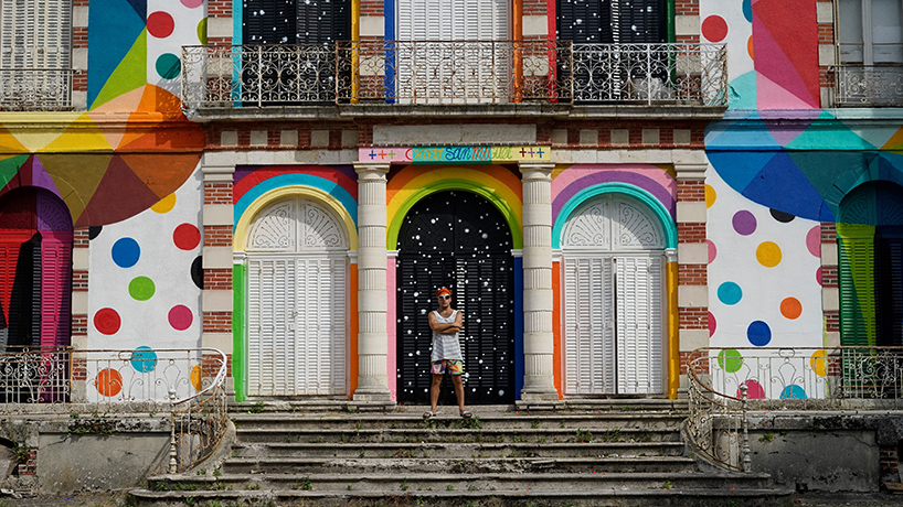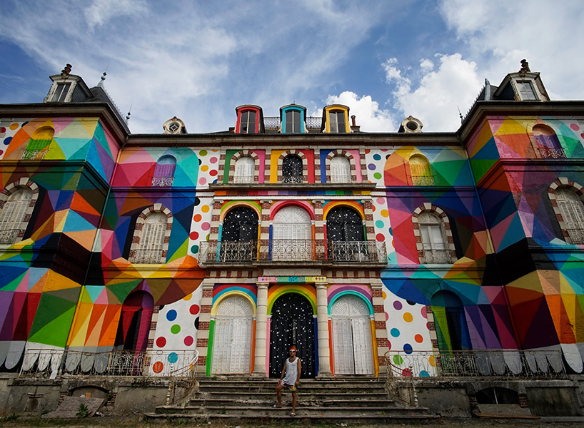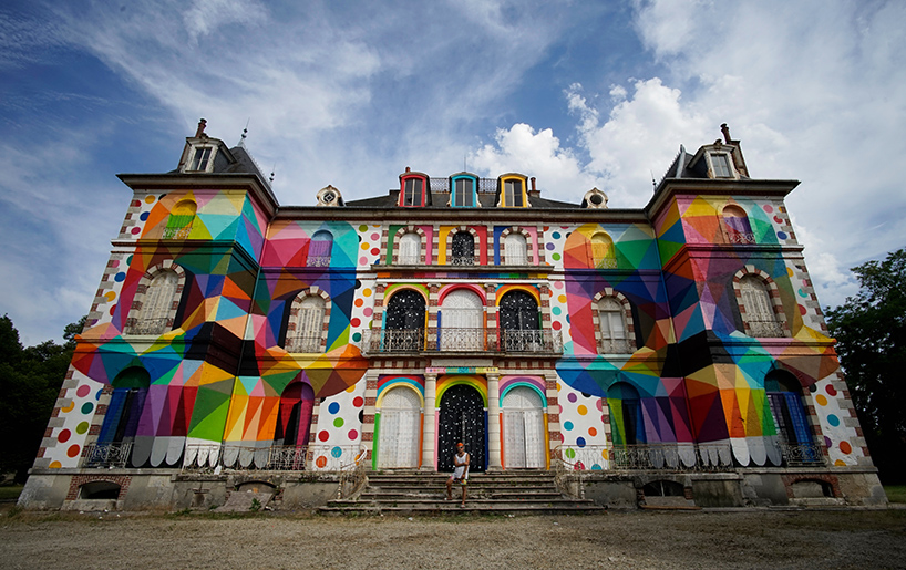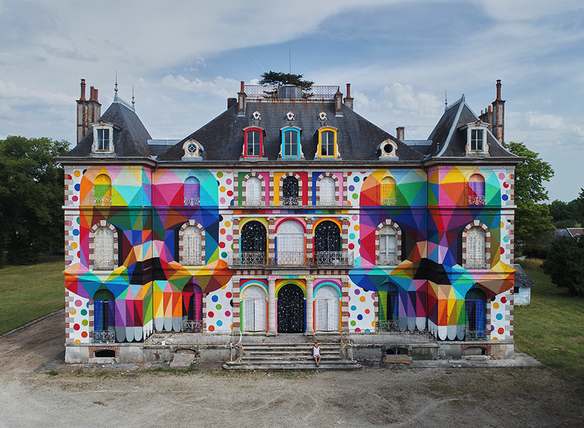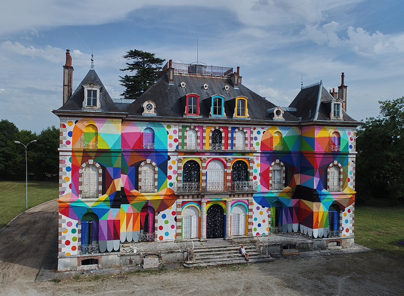 在法國中部的歷史地區(qū)盧瓦爾河谷 ——奧古達·圣米格爾為十九世紀后期城堡外墻披上了新的外衣,色彩鮮艷的幾何形狀和充滿活力的圖案已然成為該藝術(shù)家的名片。環(huán)繞著窗框和拱形門,藝術(shù)家奧古達都為其畫上了明亮的粉紅色、黃色、藍色和紅色。這些色調(diào)聚集在一起,有強烈的視覺沖擊效果,教堂兩側(cè)被這些多彩的形狀組成頭骨的圖案,無疑給教堂留下里程碑似的外觀,供后人參觀。
