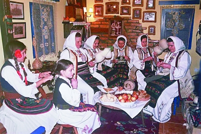 以體驗塞爾維亞傳統生活方式的民俗公園為例,這種公園一般都由十幾座塞爾維亞傳統風格的大型房屋組成。這些房屋是由當地人自己動手建造,并使用樹枝、動物皮毛等進行裝飾,與城市中的鋼筋水泥建筑截然不同。人們來到這種民俗賓館,一般是先參觀傳統房屋的內部結構、擺設。當地的導游會向游客介紹傳統農用工具的用途,以及傳統家具擺放的習俗等。然后,游客會被奉上一餐豐盛的當地傳統飲食,往往由“大份”的肉食配以當地產出的菌類和藥草類組成的“沙拉”,再來上幾杯塞爾維亞傳統的由水果釀制的“燒酒”。在宴席期間,還會有身著塞爾維亞傳統服裝的青年男女獻歌獻舞,當然也少不了用當地傳統樂器進行的彈唱。一般來說,外國游客到民俗公園游覽的比較多,當然也有很多塞爾維亞本地人帶著兒童前來體驗傳統生活。