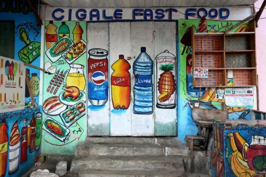 索馬里的噴繪藝術(shù)家Muawiye Hussein Sidow,也被稱為“Shik Shik”,負責(zé)給超過100家商店的外墻進行噴繪創(chuàng)作,包括理發(fā)店、茶室以及摩加迪沙的各大超市。